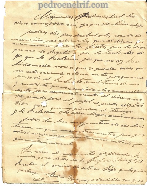 Mis queridos padres salud les deseo como para mi yo quedo bien a.d.g. Padres después desaludarles conto do micariño paso adecirles que el dinero que me mandaron para las fiestas que les digo que no lo recibi y por lo tanto les digo que lo reclamen por que no ey recibido nada