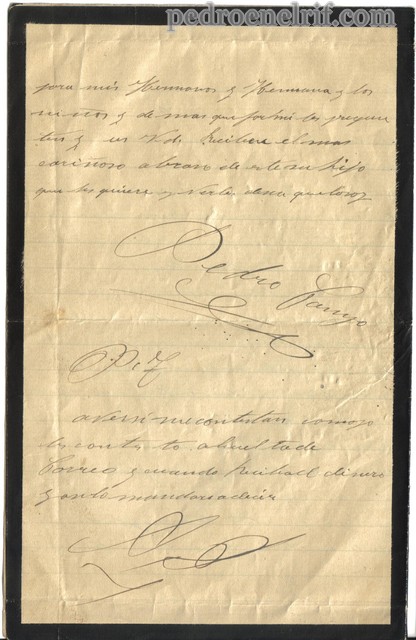 Y ade mas que si yo les pido las 10 pesetas noes que las quiera pedir por mi que las pedi por que me acian falta por que yo nunca les pedinada as ta la fecha asies que todavía no errecibido el dinero pero les mando esta carta para decir les que se portan muy mal conmigo por que esta van 3 cartas que les mando y ustedes no me an mandado nada mas queuna y eso meparece queno esta bien y amas teniendo las cosas pendientes como las tengo que si es tuvieran arregladas estaría mucho mas tranquilo pero asi no puedo estar ni lo estare as ta que no searregle todo y nosolo eso sino que mi mayor alegría es que ustedes me con tes ten alas cartas que yo les mando yo vengo a bien de tengan ustedes muchas oqupaciones pero para ir aver a Gonzalo (1) meparece que no tuvieron pereza para ir y recoger lo que buenamente les pude mandar en eso me dan a demostrar lo poco quese preocupan demi asi es que les pido por favor que mecon tes ten cuando reciban esta.