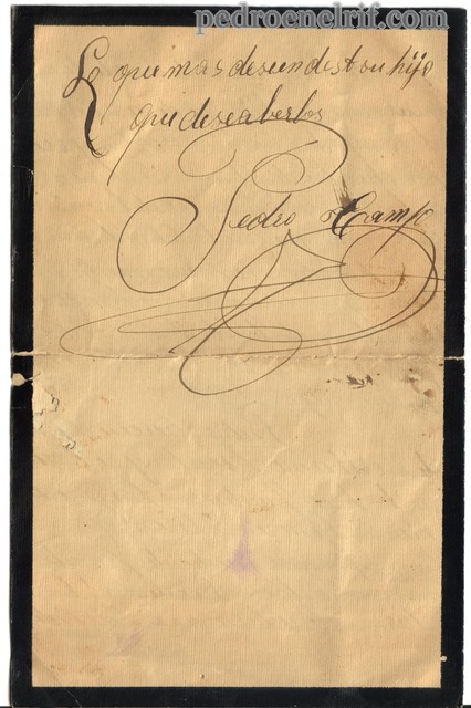 Padres hacen el favor de escribirme pronto y si hasi no lo hace pueden contar que tal hijo no tiene en Africa, y sin mas que decirles por este momento darán recuerdos a los hermanos y hermanas a hustedes.