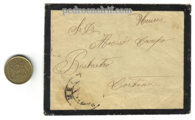 Padre de lo que me dice que le mande un poco de tabaco si se lo mandaria pero de muy buena gana pero lo sientobastante que no se lo puedo mandar por que no va nadie para hesa de estos que si fuese al guno ya se lo mandaria y si no ya poco me queda para poder abrazarlos y entonces ya llevare para V. y para mi bastante lo menos que puedo hacer es mandarle huno dentro de la carta esta que tengo mucho que se pierda pero en fin se lo mandare esto por que no puedo ser mas.
