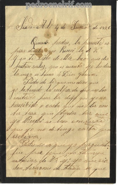 Padre de loque me dice que yo he tenido la culpa de que no les contesto pues les digo que yo no herecibido carta que no les con tes tara que todos los que yo recibi se los conteste que yo no detengo carta que reciva.