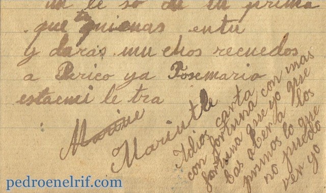La tía Ramona (hermana de Encarnación, madre de Pedro) emigró a Francia, Beziers, y casó con Eusebio Egea. En la década de 1.890 ya escribía a Costean cartas desde Francia. En algunas su hija Marieta (prima de Pedro) transmite la tristeza que le produce la separación de sus primos...